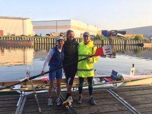 Glücklich nach dem einzigen und wahren 24-h-rudern in Berlin, erstmals mit mehr Frauen (8) als Männern (7), die teilnahmen. 5 Boote gingen am Samstag um 6:00 Uhr an den Start beim RV Hevella ; es gewinnt, welcher zweier-mit nach 24 Stunden die meisten Kilometer hat. Für reine Frauenboote gibt es einen Extrapokal. In einem spannenden, nervenzerrenden Rennen kämpften wir gegen Sportstudentinnen aus Dresden, die schließlich mit 1 km Vorsprung gewannen. Mit Katrin Otto aus Darmstadt und Dagmar Lennartz wurden wir zweite mit 168 km.