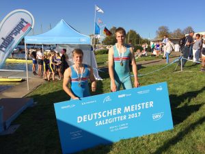 In Salzgitter war es dann ein schnelles vergnügen. Der Vorlauf war verkorkst und trotzdem hatte das 82-Boot die schnellste Zeit. Auf direktem Weg qualifizierten sie sich für das A-Finale. Dort wurden sie der Favoritenrolle gerecht. Die Konkurrenz konnte nur 200m mithalten und nach 350m war es eindeutig. Gold auf der Deutschen Sprintmeisterschaft für Tobias und Henry!