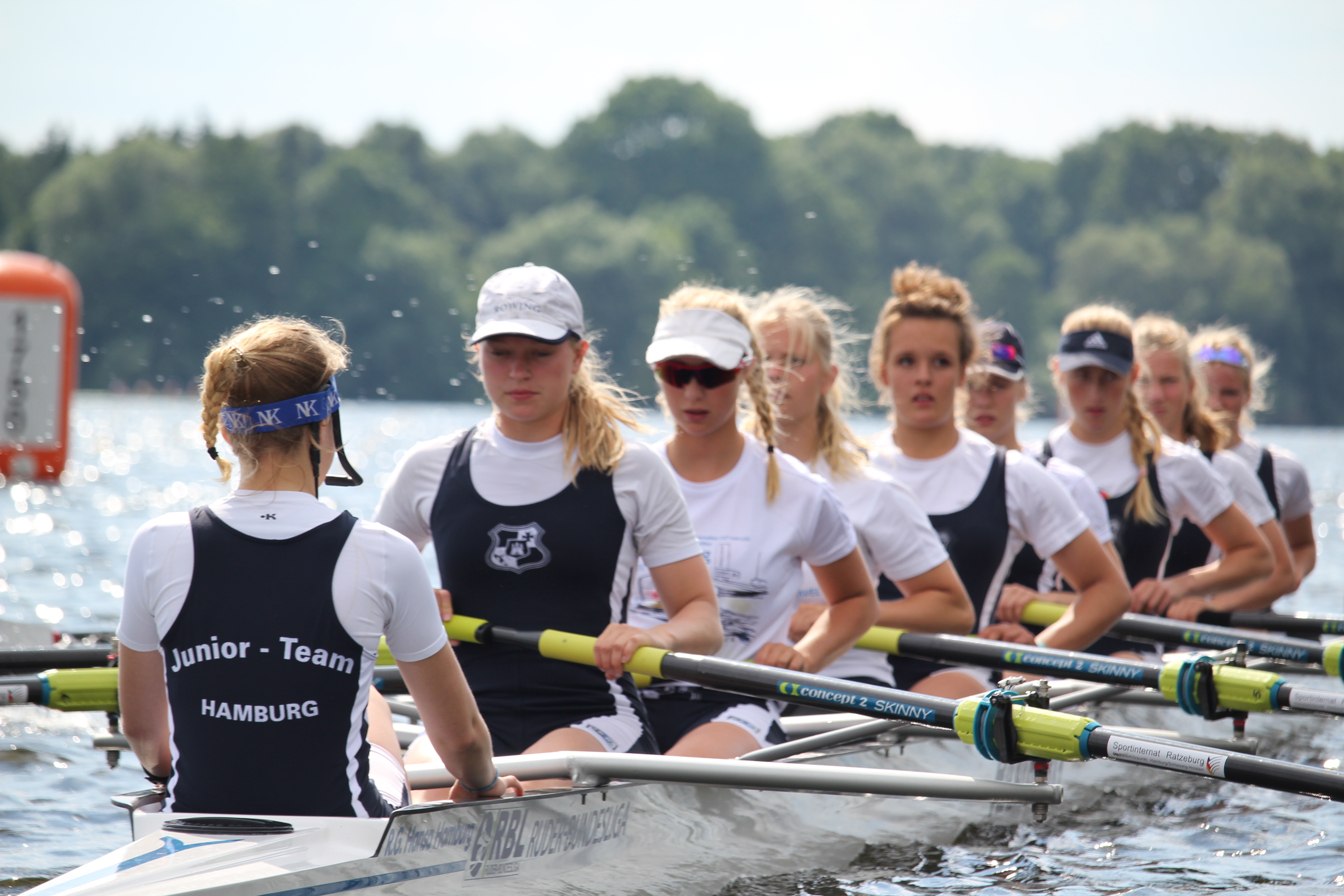 ins Halbfinale reichte. Djamila und Jana bestritten ihr Bahnverteilungsrennen im 4x mit Hamburger Beteiligung von Mathilda und Anna. Hier fuhren sie den 6. Platz ein. Den Abschluss des Tages machte Lynn und Paulina im 8x, wobei sie in unterschiedlichen Booten starteten. Lynn konnte ihren 8x zum Sieg im Bahnverteilungsrennen steuern. Bei Paulina reichte es für Platz 4.