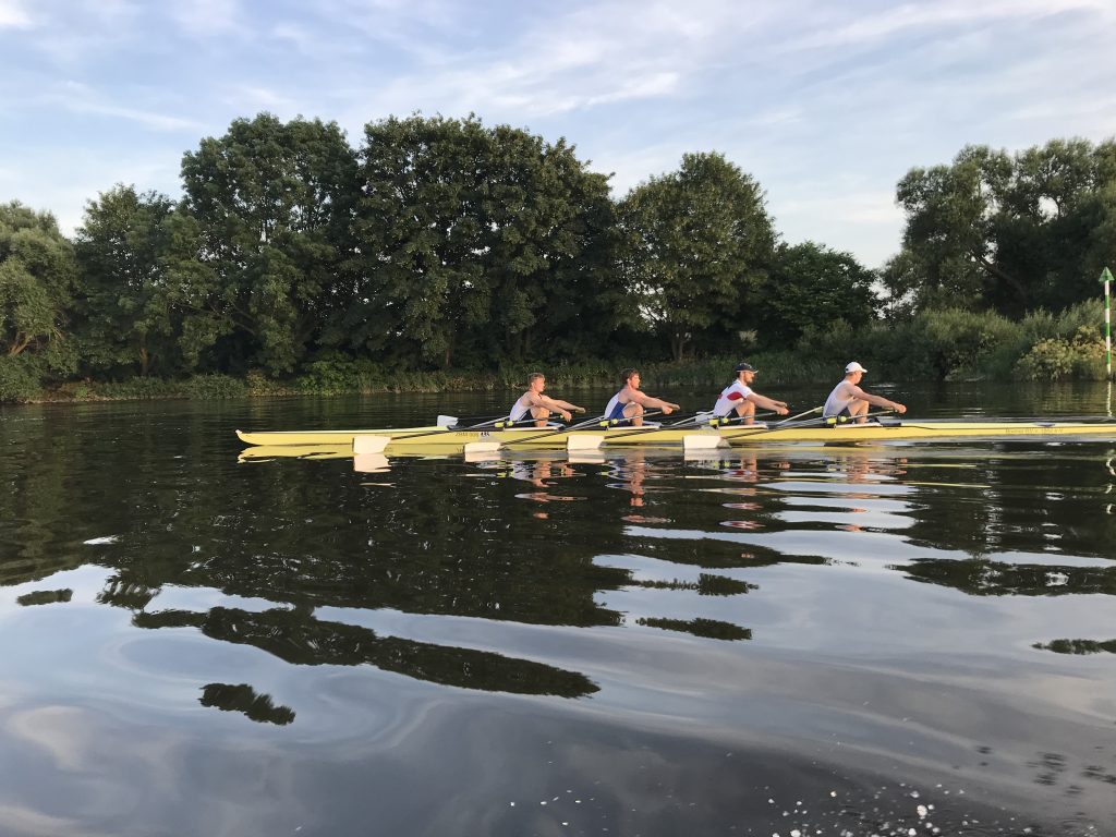 Zugleich rudert der Bremer Ruderverein von 1882 in fünf Vierern und vier Achtern um Platzierungen und Medaillen bei der zeitgleich auf der Dove-Elbe ausgetragenen Deutschen Meisterschaft (DM). „Wir sind überzeugt, ein gutes Bild abzugeben und bei der Medaillenvergabe mitreden zu können.“, meint Trainer Sören Dannhauer nach den letzten Trainingseindrücken. Erstmals sind auf der DM Mixed-Achter und Mixed-Vierer ausgeschrieben. In der Besetzung Max Liepold, Marita Hesse, Ann-Kathrin Dannhauer und André Müller (BSC) haben wir einen Medaillenkandidaten im 6-Boote-Finale der Mixed-Vierer. Die Mixed-Achter müssen sogar über Vorläufe gehen. Beiden Booten aus Bremen ist der Finaleinzug zuzutrauen. Boot 1 ist mit Stf. Lynn Artinger, Karen Zantop, Levke Gill, Lukas Nahrgang, Jens Große, Henry Schultz, Charly Hoffmann (Verden/Trainingsgruppe BRV 1882), Stefan Giesen (BSC) und Lena Schröder (Lübeck) dabei. Boot 2 ist mit Stf. Luca Reinshagen, Jana Brinkmeier, Lea Meyer, Johanna Heil, Finn Priebe, Gerd Meyer, Simon Hansmann, Luise Reusch (Bhv) und Nils Hülsmeier (BSC) besetzt.