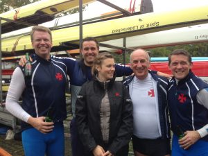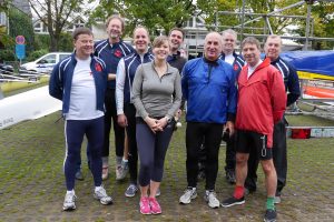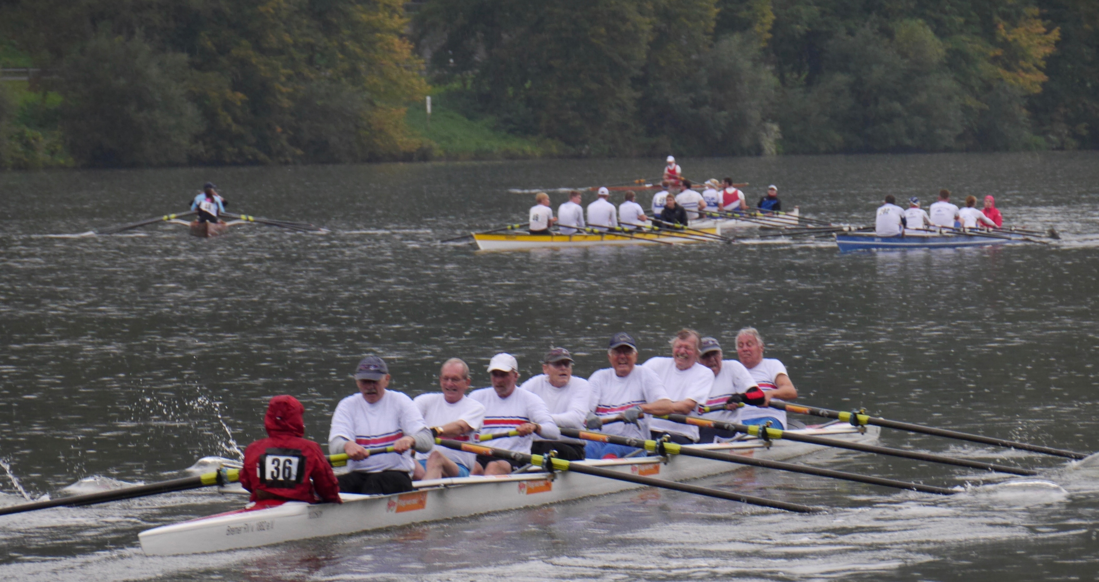 Unser Master E Achter (Durchschnittsalter 55) mit Sven Philippsen, Jens Ronneburg, Hans-Wener Heidmann, Marco Growers, , Christian Stubbemann, Thomas Feyer Klaus Michael, Heiner Gratenau Steuer Franzi Goldgrabe ruderte gegen starke Konkurrenz eine respektable Zeit (16:33,3) die aber nicht ganz für einen vorderen Platz reichte.