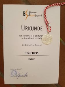 Vom Bremer Ruderverein waren in diesem Jahr Lynn Artinger, Tim Eilers, Henrike Schukat und Antonia Düchting mit ihren Trainern Tammo Meyer und Christina Mahler eingeladen. Lynn steuerte im letzten Jahr mehrmals den Deutschland-Achter zum Sieg. Ihre größten Erfolge waren der Sieg auf der U19 Europameisterschaft und ein zweiter Platz auch der U19 Weltmeisterschaft. Tim wurde für seinen zweiten Platz auf der Deutschen Meisterschaft zur Ehrung eingeladen, konnte aber leider nicht im Rathaus sein, da er momentan ein Auslandsjahr macht. Henrike und Antonia wurden für ihren zweiten Platz im Riemenvierer auf der Deutschen Meisterschaft geehrt.