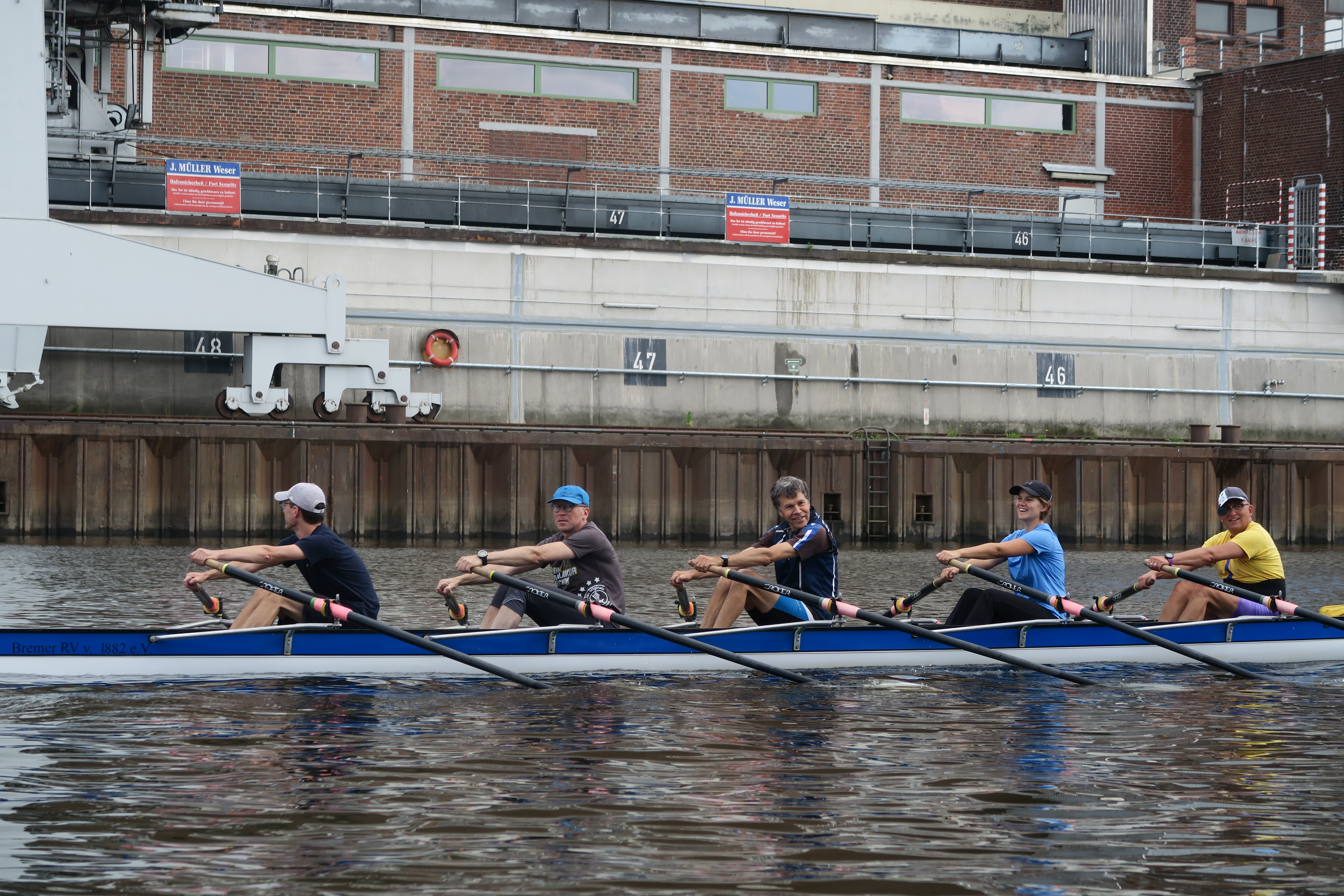 Neuwasser in Bremen? Bisher unbefahrene Gewässer? Wo sollen die denn, bitte, noch zu finden sein! Diesen (und ähnlichen) skeptischen Stimmen zum Trotz haben zehn RuderInnen des BRV v. 1882 am Samstag, den 19. August 2017 bei Sonne, Wind und Wellen (und ein paar Regentropfen) eine neue „Rudergeschichte“ geschrieben: Was anlässlich eines Breitensporttermins im Frühsommer dienstagabends am „Mäuseturm“, dem Molenfeuer des ehemaligen Überseehafens, als fixe Idee entstand, konnte am Ende tatsächlich in die Tat umgesetzt werden.