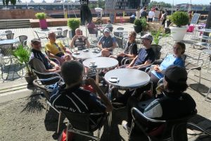 Auf dem Rückweg wurde abermals der Getreidehafen durchfahren, anschließend noch der ehemalige Werfthafen. Über das Lankenauer Höft ging es weiter in den Europahafen, wo in der Marina angelegt und bei Sonnenschein eine Kaffeepause in einem nahen Restaurant eingelegt wurde. Auf dem Rückweg wurde abschließend der kleine Hohentorshafen, der ebenfalls noch in Betrieb ist, auch noch „mitgenommen“. Nach 25 gezählten Kilometern endete das tolle Erlebnis der „Großen Hafenrundfahrt“ am Steg unseres Vereins. Die TeilnehmerInnen danken dem Hafenmeister für die freundlich gewährte Ausnahme – und wollen nach weiterem Neuwasser suchen!