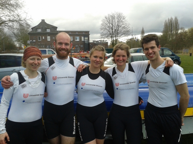 Es ist schon fast eine Tradition. Seit drei Jahren beginnen wir unsere Rudersaison in Rheine auf der Frühjahrsregatta. Dieses Mal starteten wir in einem Mixed Gig 4x+ bestehend aus Nicole Weymann, Matthias Koop, Sebastian Balke, Melanie Kanz und Franzi Goldgrabe an den Steuerseilen.