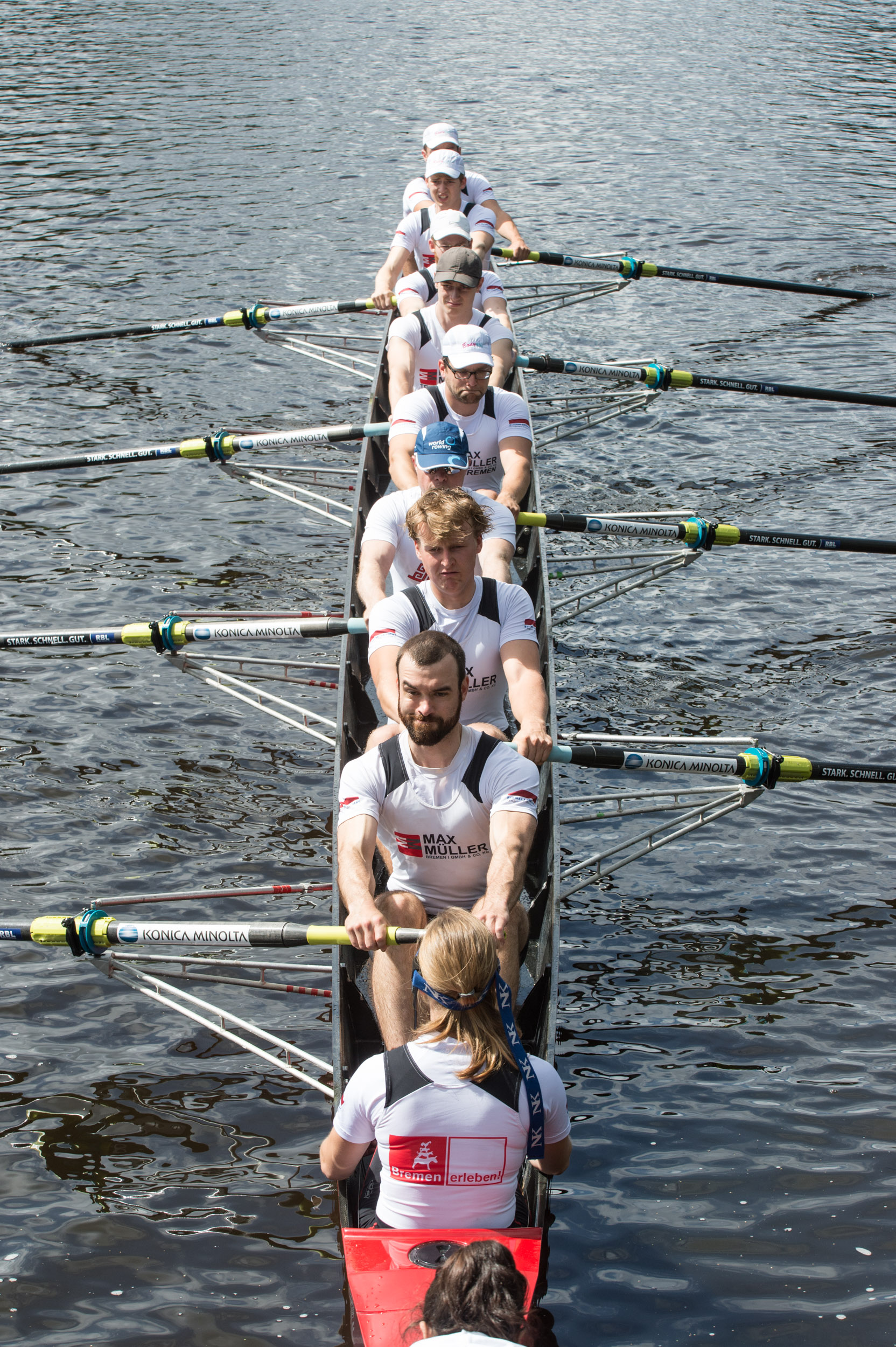 Im Finale um Platz 13 und 14 trat der von Max Müller GmbH & Co. KG, dem Bremer Lernkontor und von BodyMind gesponserte Bremen erleben!-Achter gegen den Achter aus Hameln an, wieder reichte es nicht für einen Sieg. Auch wenn der zehnte Platz der Rangliste in der zweiten Liga der Männer gehalten werden konnte, war es ein enttäuschender Renntag für die Bremer.