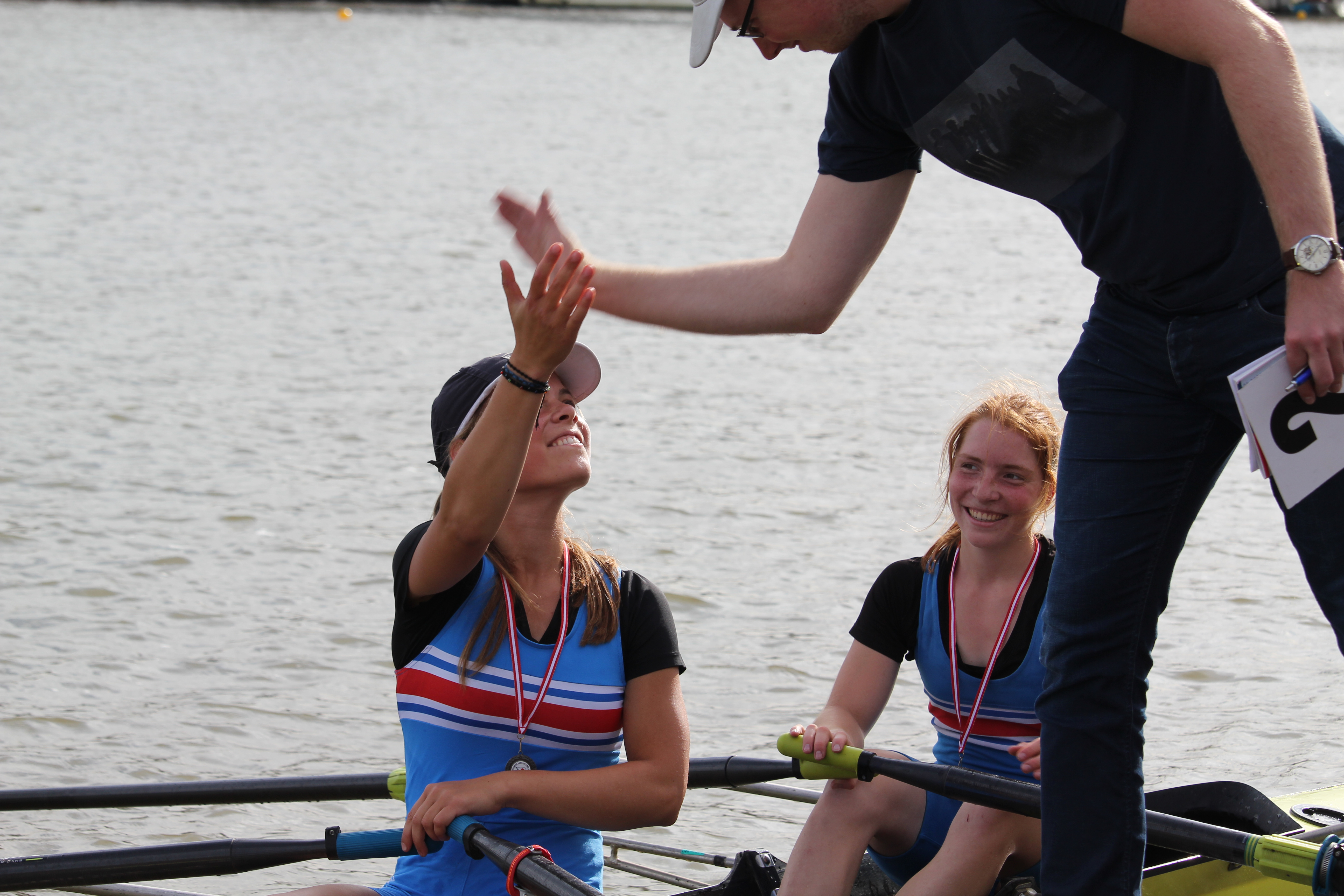 Nun folgten über den Vormittag verteilt einige Rennen der Kleinboote mit sehr zufriedenstellenden Ergebnissen und auch zwei weitere Viererrennen mit einem ersten und einem zweiten Platz für den BRV. Am Nachmittag ging es dann erneut mit einigen Zweierrennen weiter. Lasse und Kristian(VRV), sowie Jana und Djamila fuhren auf Platz Eins und Pia(VRV) und Antonia sicherten sich Platz Zwei. Tobi, im Einer, machte den vierten Platz. Zwei Vierer der B-Junioren aus Bremen lieferten sich ein Rennen mit Platz Eins für Til(BRC), Janek(BRC), Lasse(BRV), Kristian(VRV) und Steuerfrau Yva(BRC) und Platz Drei für Fynn(BRC), Julian(VRV), Ruben(BRV), Jovan(BSC) und Tina(BRV) als Steuerfrau. Es folgten zwei weitere Mix-Vierer mit Teilnehmern von `82.