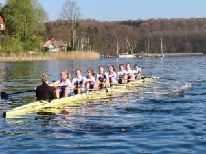 Zum 19. Mal in Folge fuhr das Ruderteam unserer Schule zur Vorbereitung auf das Landesfinale von „Jugend trainiert für Olympia“ in die Ruderakademie des Deutschen Ruderverbands nach Ratzeburg. Doch diesmal schwitzten die Schülerinnen und Schüler nicht nur von der Anstrengung, sondern vor allem durch die für eine Aprilwoche überdurchschnittlich hohen Temperaturen. Der begleitende Lehrer Martin Kurp und der Koordinator des Sportprofils Rudern Thomas Wichmann konnten sich nicht erinnern, in der Akademie seit dem Start im Jahr 2000 solch eine stabile Wetterlage bei warmen 23 -28 Grad jemals erlebt zu haben. Zum ebenfalls guten Gelingen der Woche trug dabei das ruhige Wasser des Sees bei, da es kaum Wellen gab.