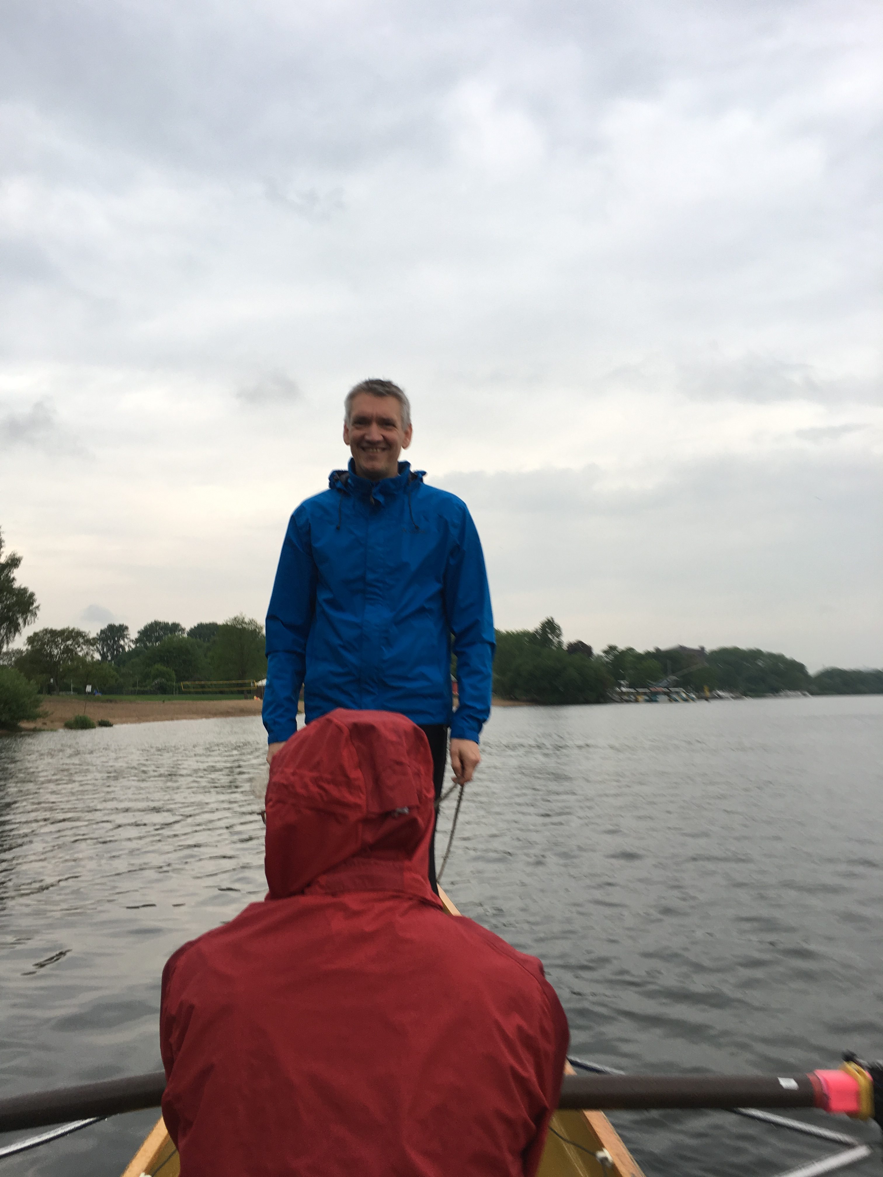 “Wir rudern bei jede m Wetter und ganzjährig”, Arnes Aussage vom letzten Mal klingt mir noch in den Ohren. Es hat einen ordentlichen Guss gegeben und nun ist es doch etwas frisch auf dem Wasser. Egal, wir starten in zwei Vierern. Alle wissen inzwischen so ungefähr was sie tun müssen, naja mal mehr mal weniger. Man kommt zumindest voran, auch wenn die Bewegungsabläufe noch verbesserungswürdig sind.