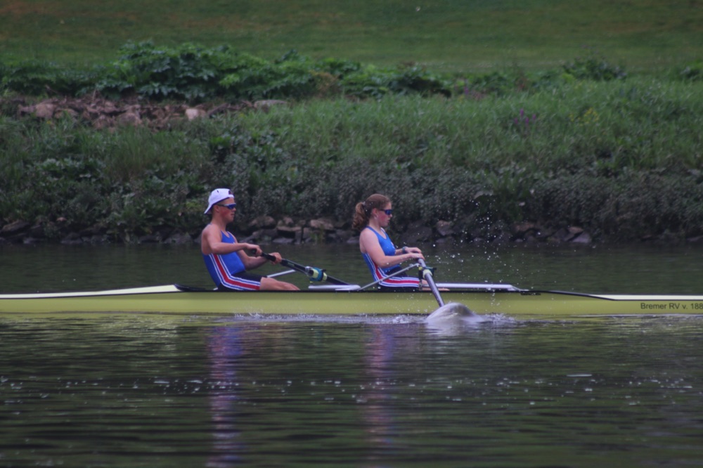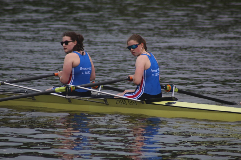 Den Sieg im Männer 2x konnten sich Claas und Ben in einem vollen Feld sichern, bei den Frauen hatten Hanna Jäger und Marie Rasper den Bugball vorn.
