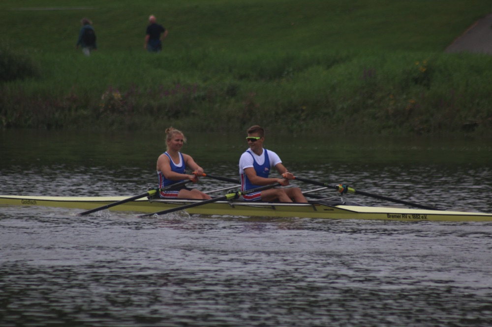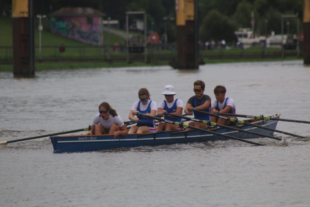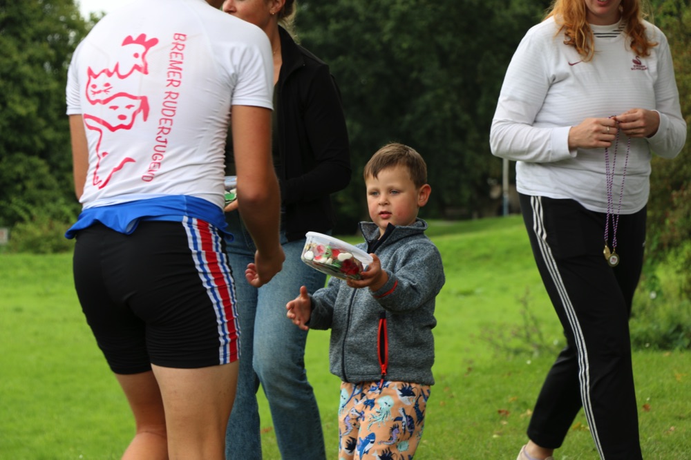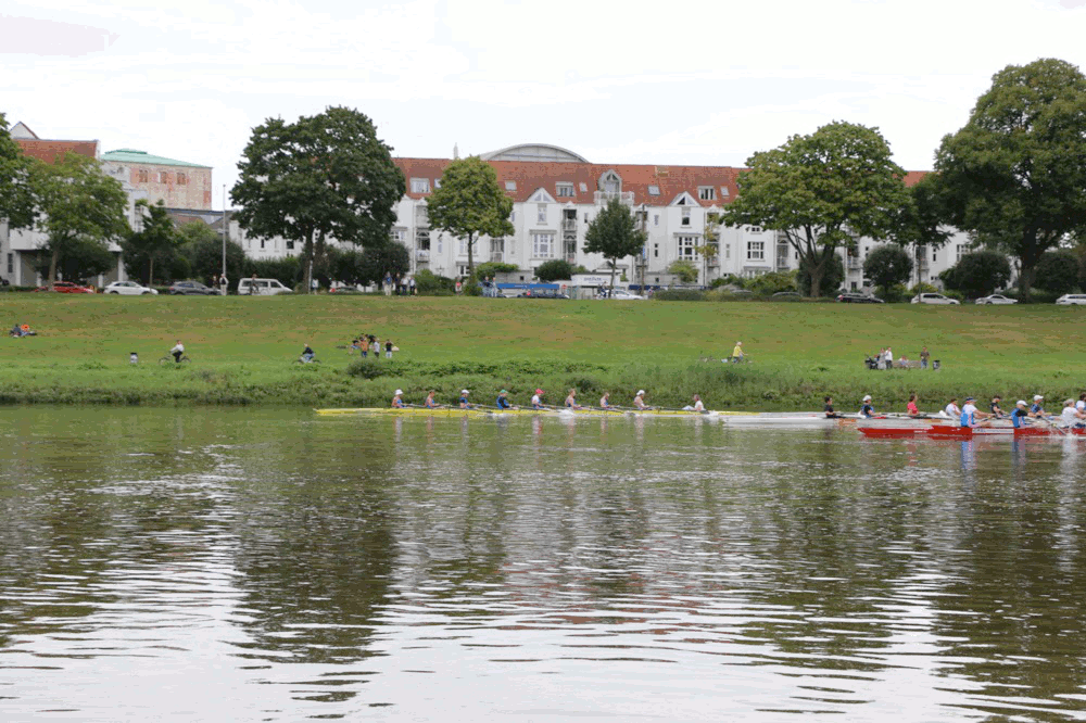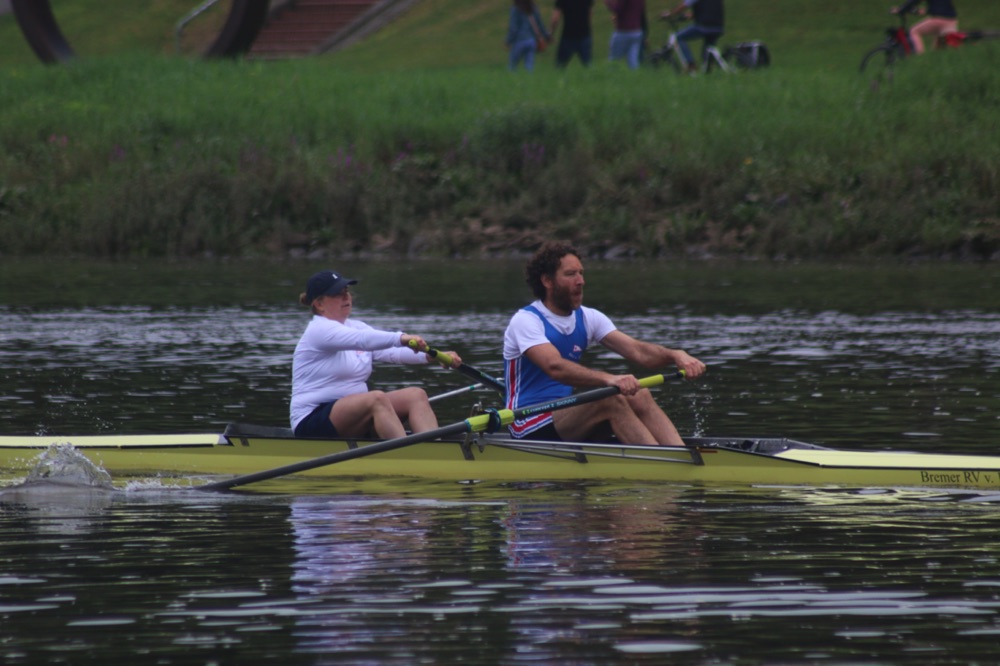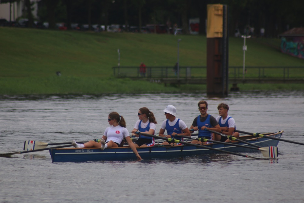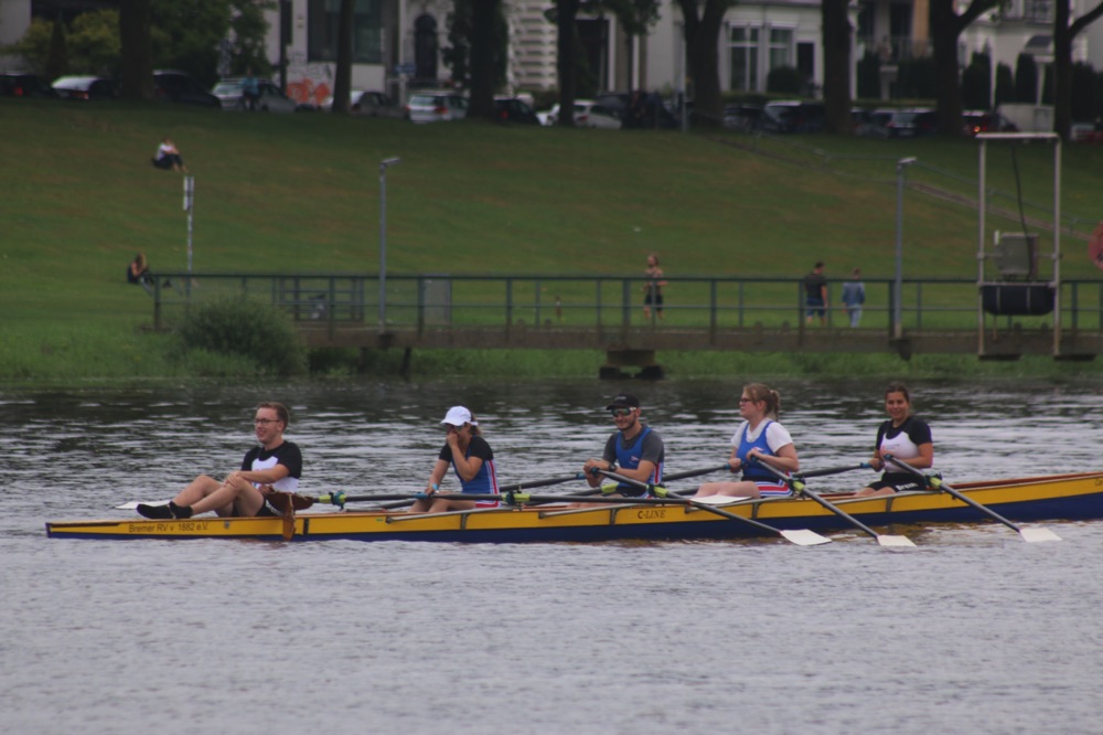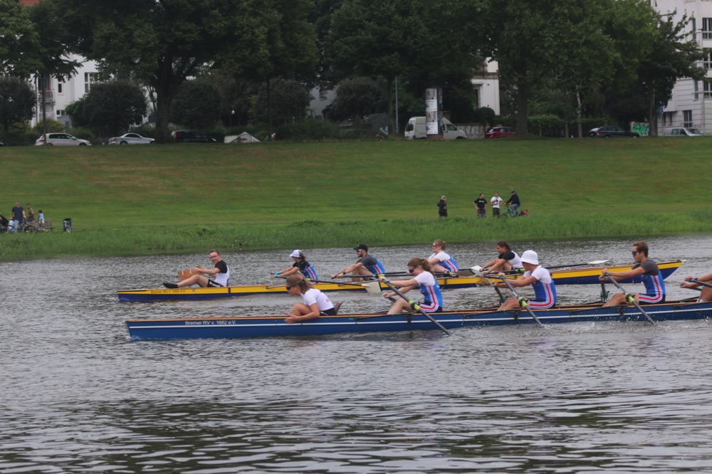 Den Auftakt machte der Mixed 2-, den Jette und Jonte knapp vor Andreas und Kristina von Paczinsky gewannen. Im neu eingeführten „Stadtteilrennen“ trafen sich Ruderer aus Findorff und Schwachhausen, wobei die Findorffer am Ende den Bugball vorne hatten.