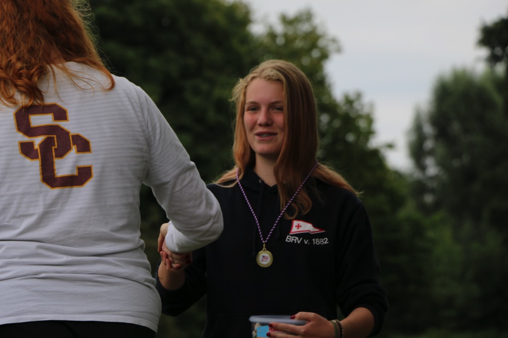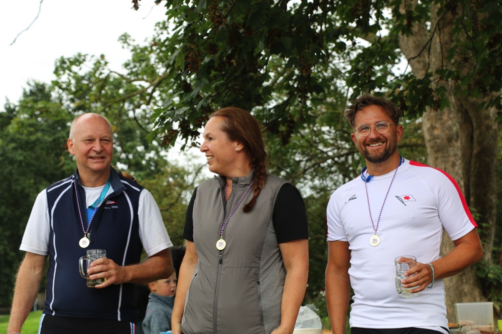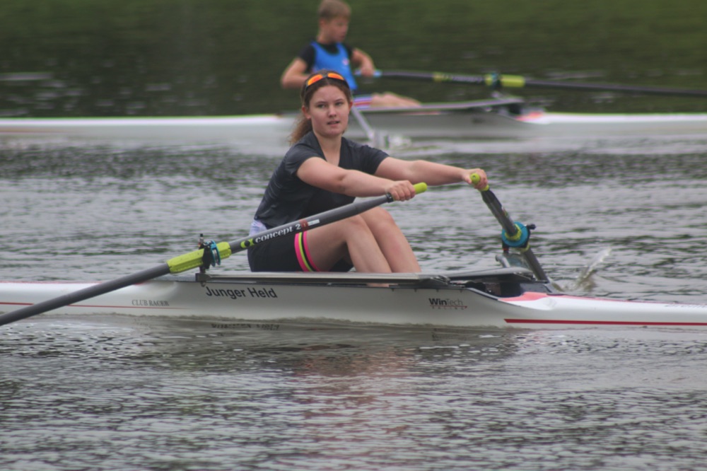 Beim Kindereiner kenterte ein Boot kurz nach dem Start. Die beiden anderen Konkurrentinnen beendeten fair sofort das Rennen, warteten ab, bis die Ruderin aus dem Wasser wieder ins Boot gestiegen war und ruderten gemeinsam zurück zum Start. Dort wurde dann neu gestartet. Gut, dass das Kentern und der Wiedereinstieg ins Boot erst kürzlich auf dem Trainingsprogramm stand…