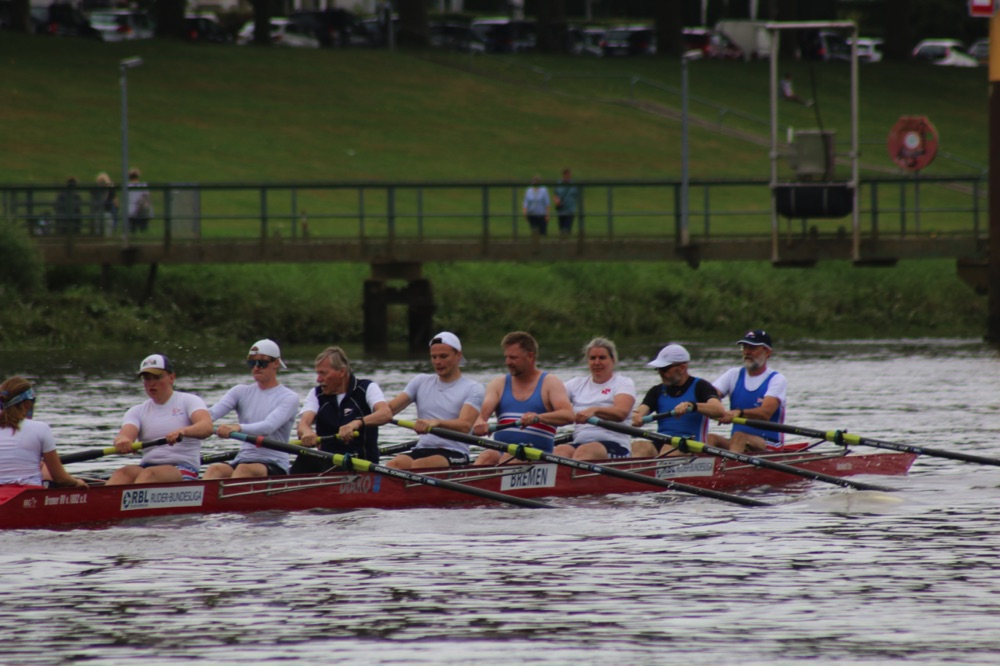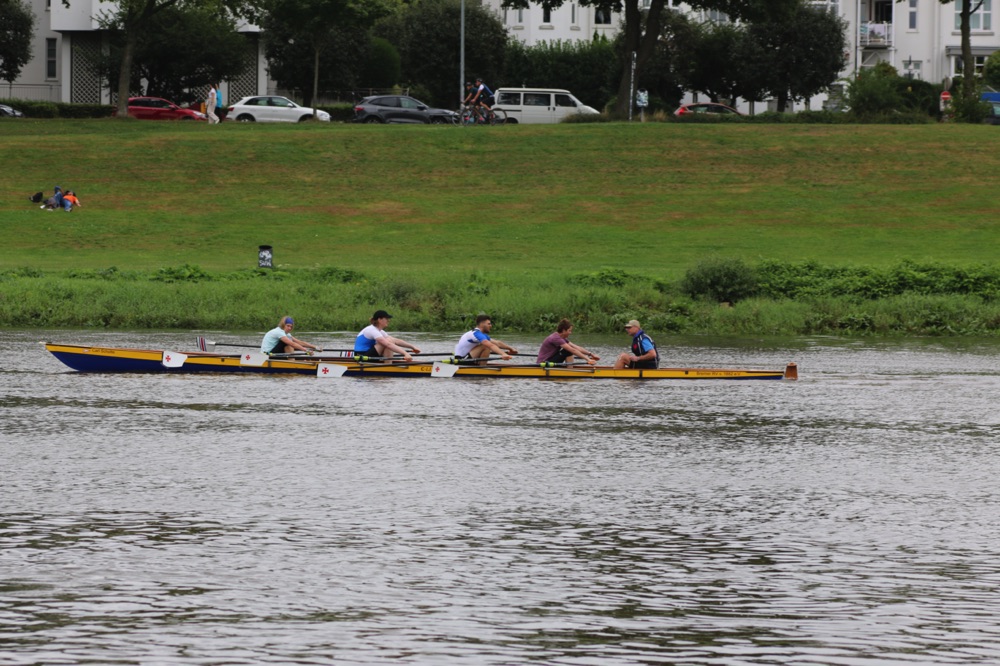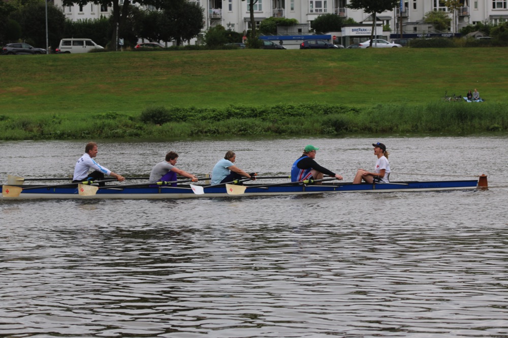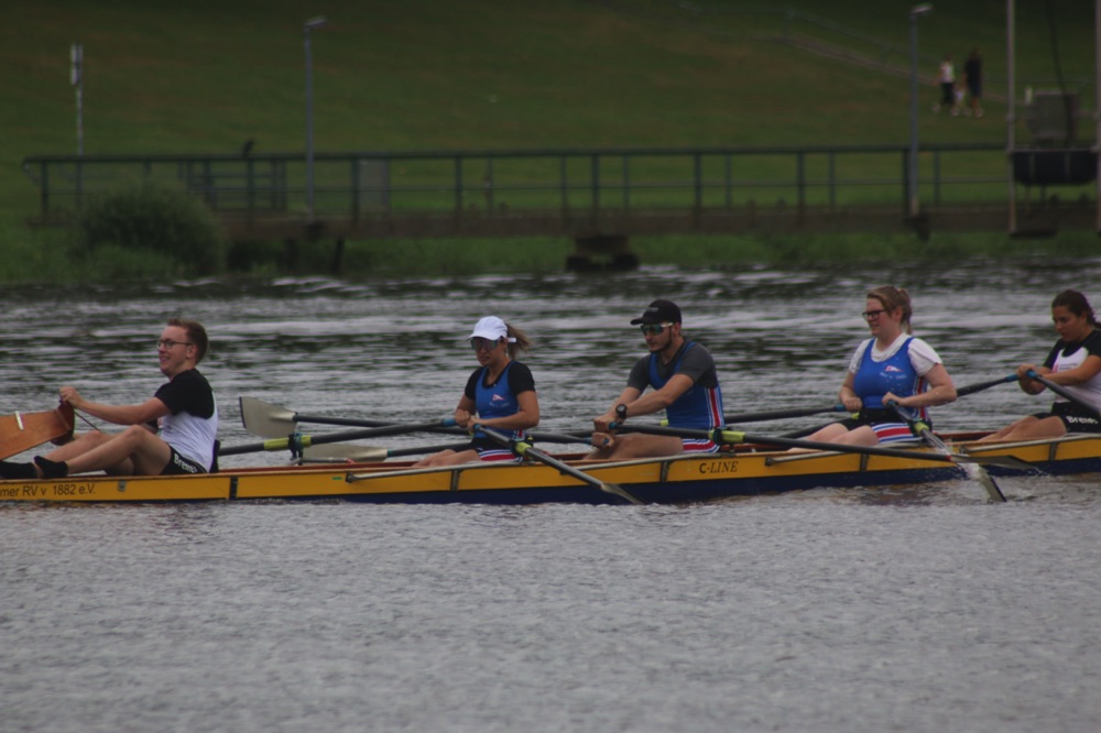 In diesem Jahr haben uns auch eine große Anzahl von Ehemaligen aus der aktiven Ruderzeit in den 90er-Jahren begleitet. Diese starteten dann mit Unterstützung von erfahrenen Aktiven 82ern direkt mit der Sensation und gewannen den Mixed 4x. Wir gratulieren Daniela Meyer, Martin Dechow, Jens Mocha, sowie Emma Maurer zum Sieg.