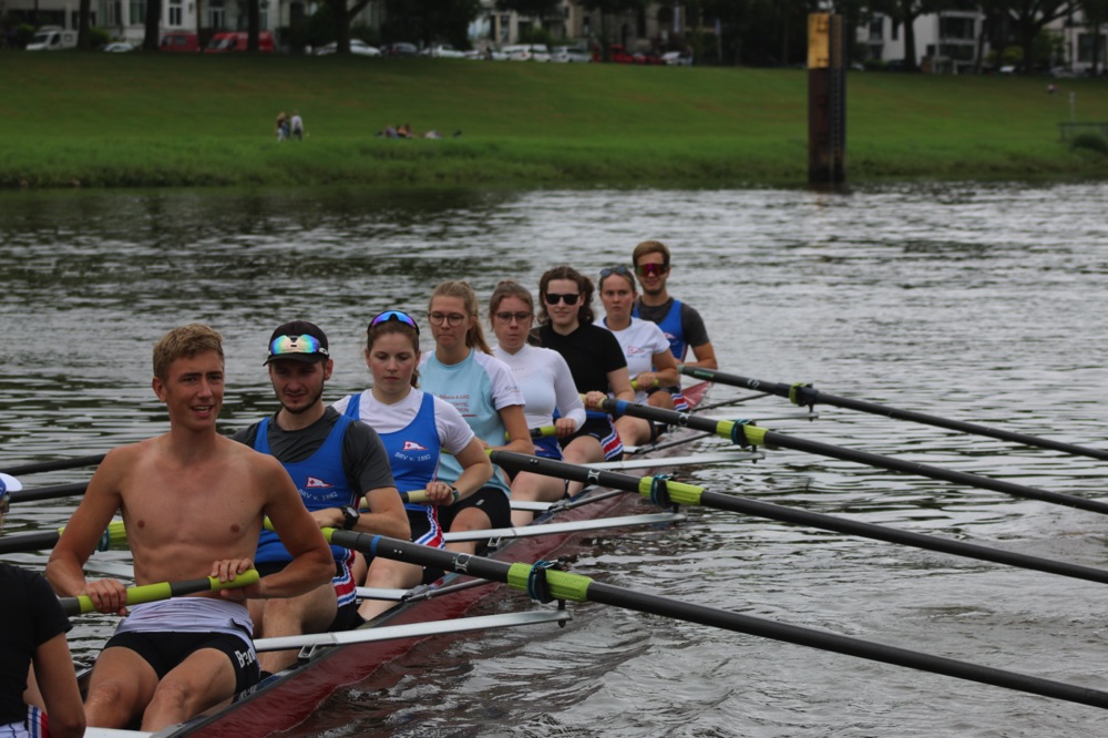 Bei der diesjährigen Vereinsregatta am 17.08.2024 gab es nicht nur bei den Achtern ein ungewohnt volles Feld! Laut Erinnerungen der Anwesenden gab es zum ersten Mal in der Historie der Vereinsregatta insgesamt 45 Teilnehmer:innen, die sich den Sieg im Achter errudern wollten.
