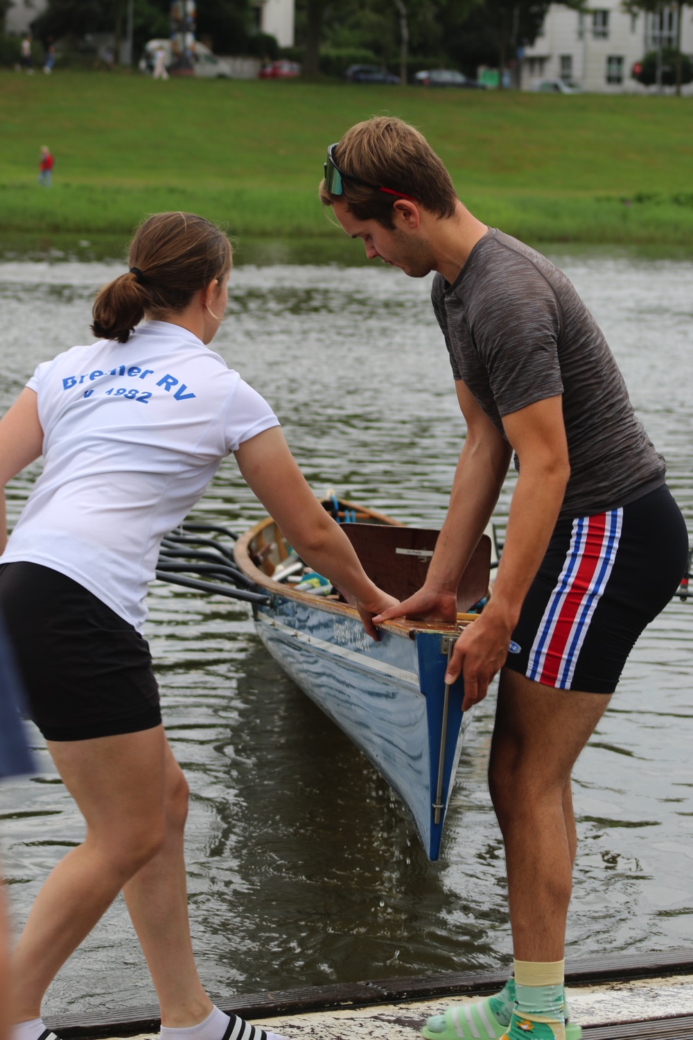 Den Auftakt machte der Mixed 2-, den Jette und Jonte knapp vor Andreas und Kristina von Paczinsky gewannen. Im neu eingeführten „Stadtteilrennen“ trafen sich Ruderer aus Findorff und Schwachhausen, wobei die Findorffer am Ende den Bugball vorne hatten.