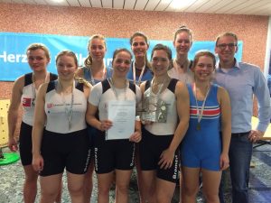 und der Taktikbesprechung mit Sören kam auch schon das Startsignal. Nach 1:07,3 Minuten und 350 gemeinsam geruderten Metern, war auf jedem Bremer Gesicht ein Lächeln zu finden. Die Mannschaft aus Kettwig konnte erst drei Sekunden später durchatmen und der Bremer Ruderverein in Renngemeinschaft mit dem Wettkampfteam der Universität Bremen verteidigte damit den Titel im Frauenachter.