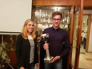 Höhepunkt des Abends war die Verleihung des Pokals für den Sportler, der den Verein im vergangenen Jahr am besten nach außen vertreten hat und ihn somit mit “Ruhm und Ehre” bereichert. Der Preis ging dieses Jahr an Lasse Tietz, der sich in der vergangenen Saison mit Medaillen bei den Deutschen Jahrgangsmeisterschaften (U18), aber auch bei den „richtigen“ Deutschen Meisterschaften, hervorragend präsentierte.