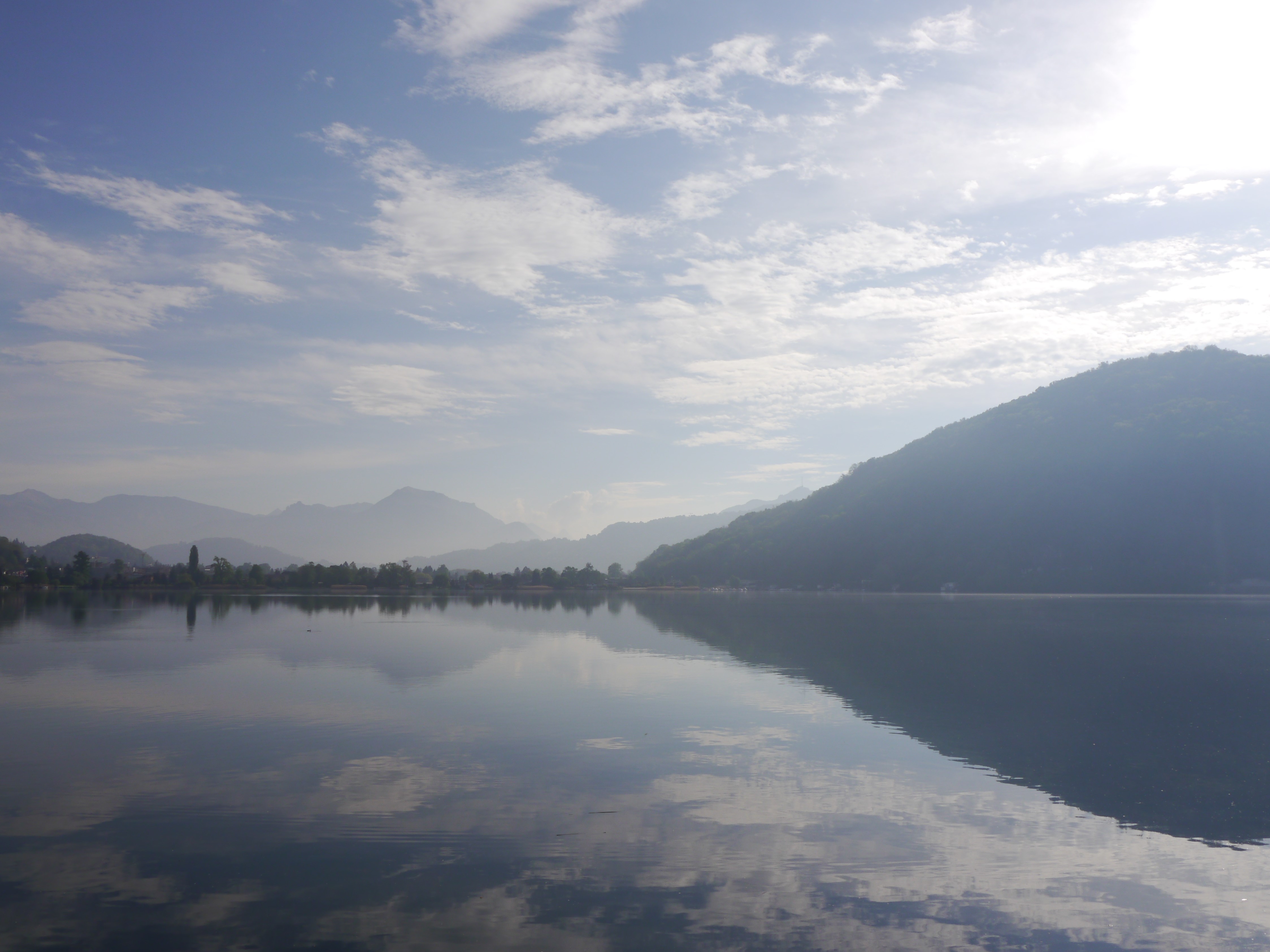 Morgens und vormittags konnten wir die Wassereinheiten bei spiegelglattem Wasser genießen, doch der aufkommende Wind am Nachmittag und die dadurch entstehenden Wellen nervten manchmal sehr und trugen zu keinem konzentrierten Training bei. Trotzdem wurden die Belastungen immer besser und man merkte, wie es von Einheit zu Einheit besser lief. Vielleicht trug ja auch die wunderschöne Landschaft und der tolle Blick auf die Schweizer Alpen dazu bei…